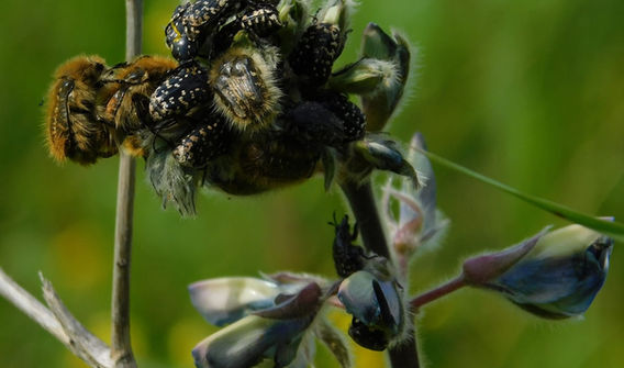 השמש פרצה מבין העננים והאוויר התמלא בחיפושיות התרות אחר פרחים, להשיב את נפשן. תוך כמה דקות נוצר עומס על הצמחים הפופולריים ביותר. תפרחות התורמוס הארץ-ישראלי (Lupinus palaestina) הרכינו ראשיהן ממשקל החרקים, ביניהם בלטו פרחיות נעמי (Oxythyrea noemi) ופרחיות שעירות (.Tropinota spp). וכמובן שאין אביב ללא רביה, כך שהפרחיות השעירות פנו ברובן להזדווג, בלי להפסיק את ארוחתן.
